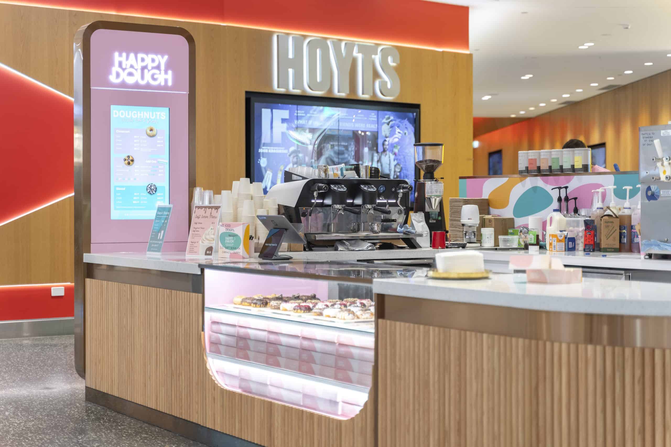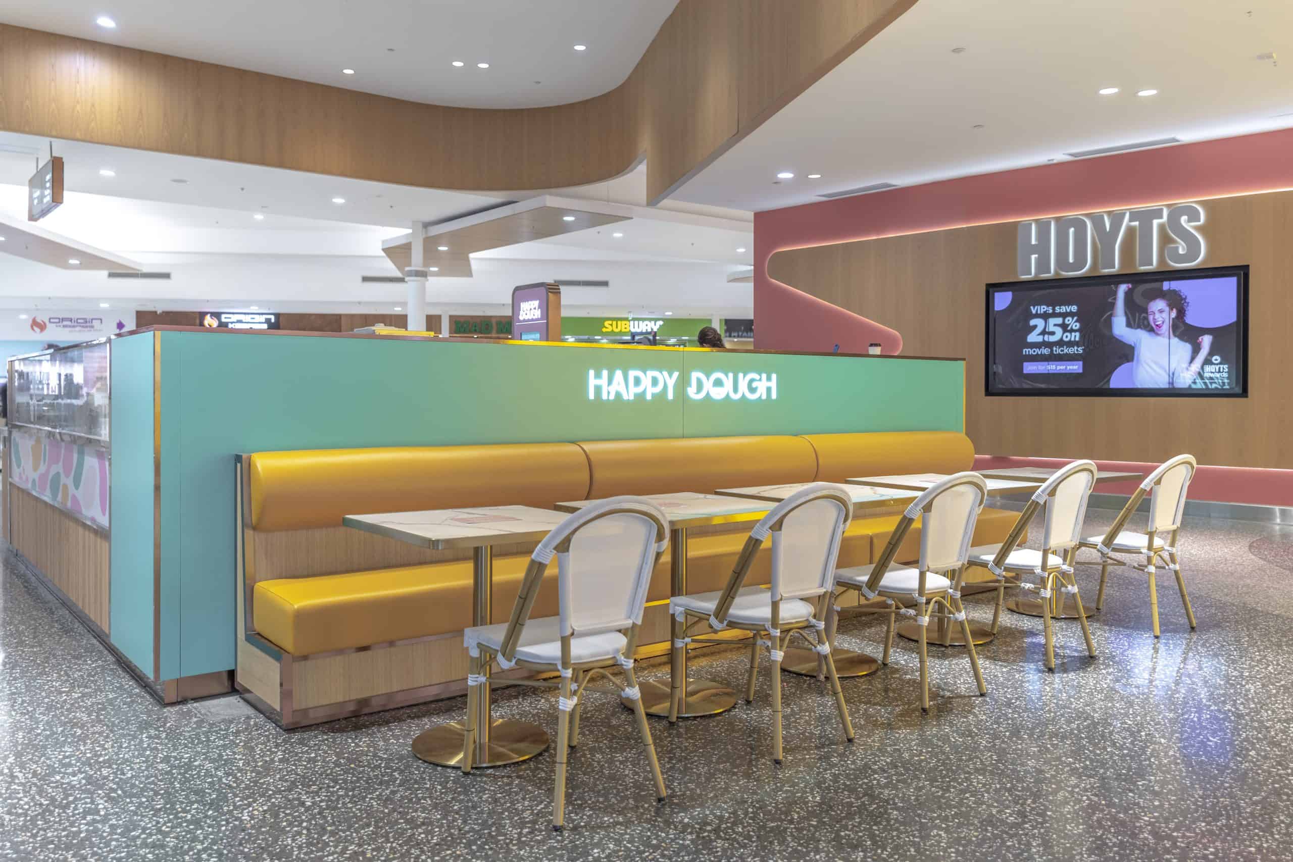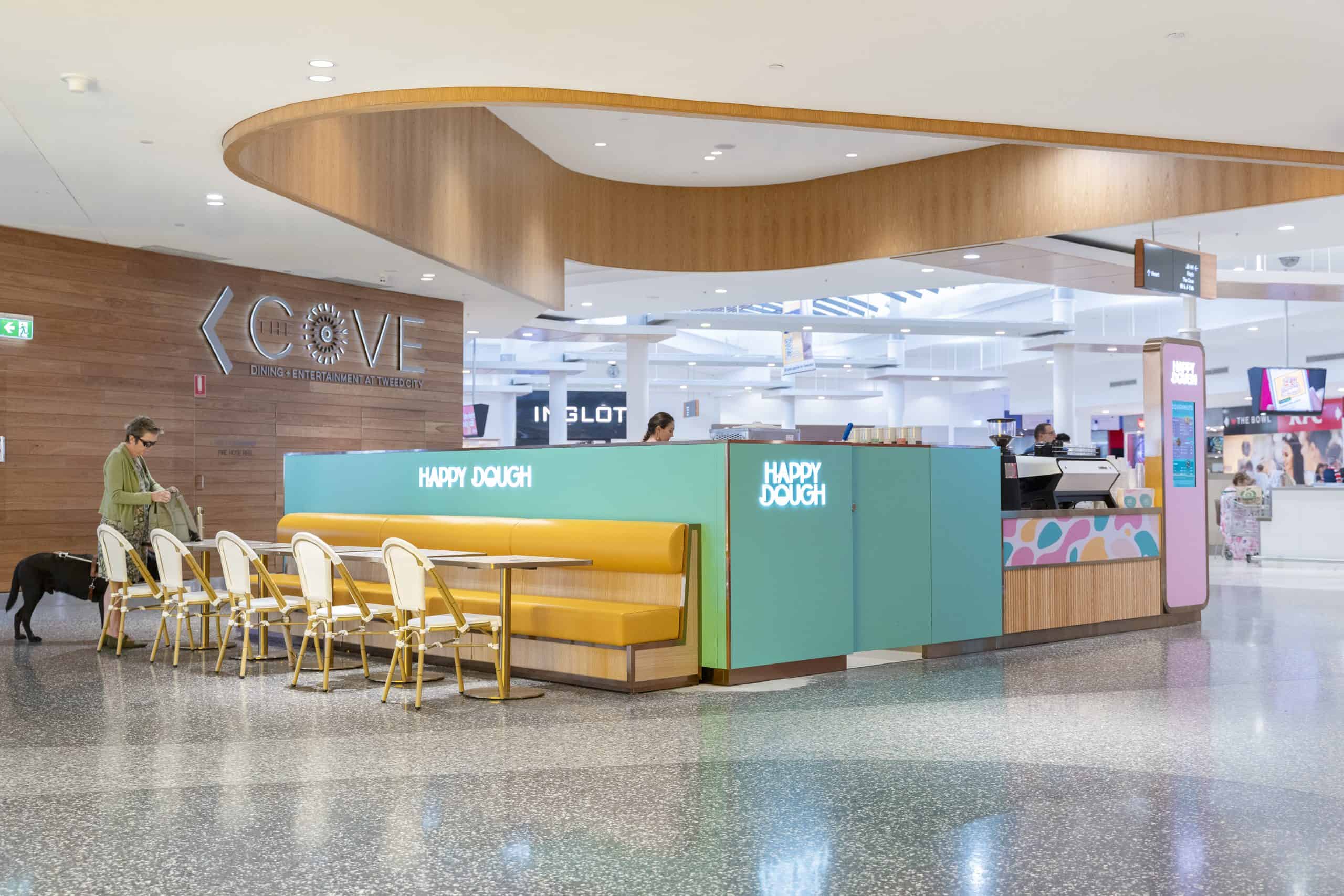 Introducing Happy Dough at Tweed City Shopping Centre – A delightful journey from pop-up to permanent success. Creating a bakery space in a busy shopping centre demands a balance of inviting aesthetics and practical functionality. Our team rose to the challenge, designing a layout that optimizes customer flow and showcases Happy Dough’s delectable offerings. The warm, aromatic atmosphere we’ve crafted entices shoppers and keeps them coming back. Our long-term partnership with Happy Dough has seen us expand from pop-ups to multiple locations across Queensland and now into Victoria, demonstrating our ability to scale designs while maintaining brand consistency. The Tweed Heads location seamlessly blends the brand’s signature style with local touches, creating a unique and welcoming space for patrons to enjoy their favorite treats.